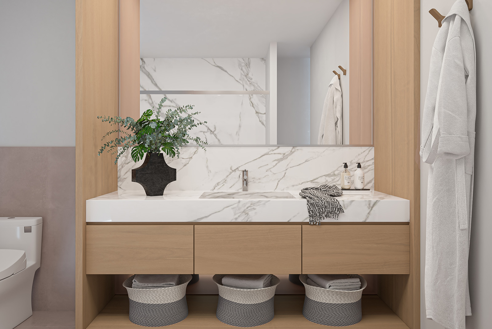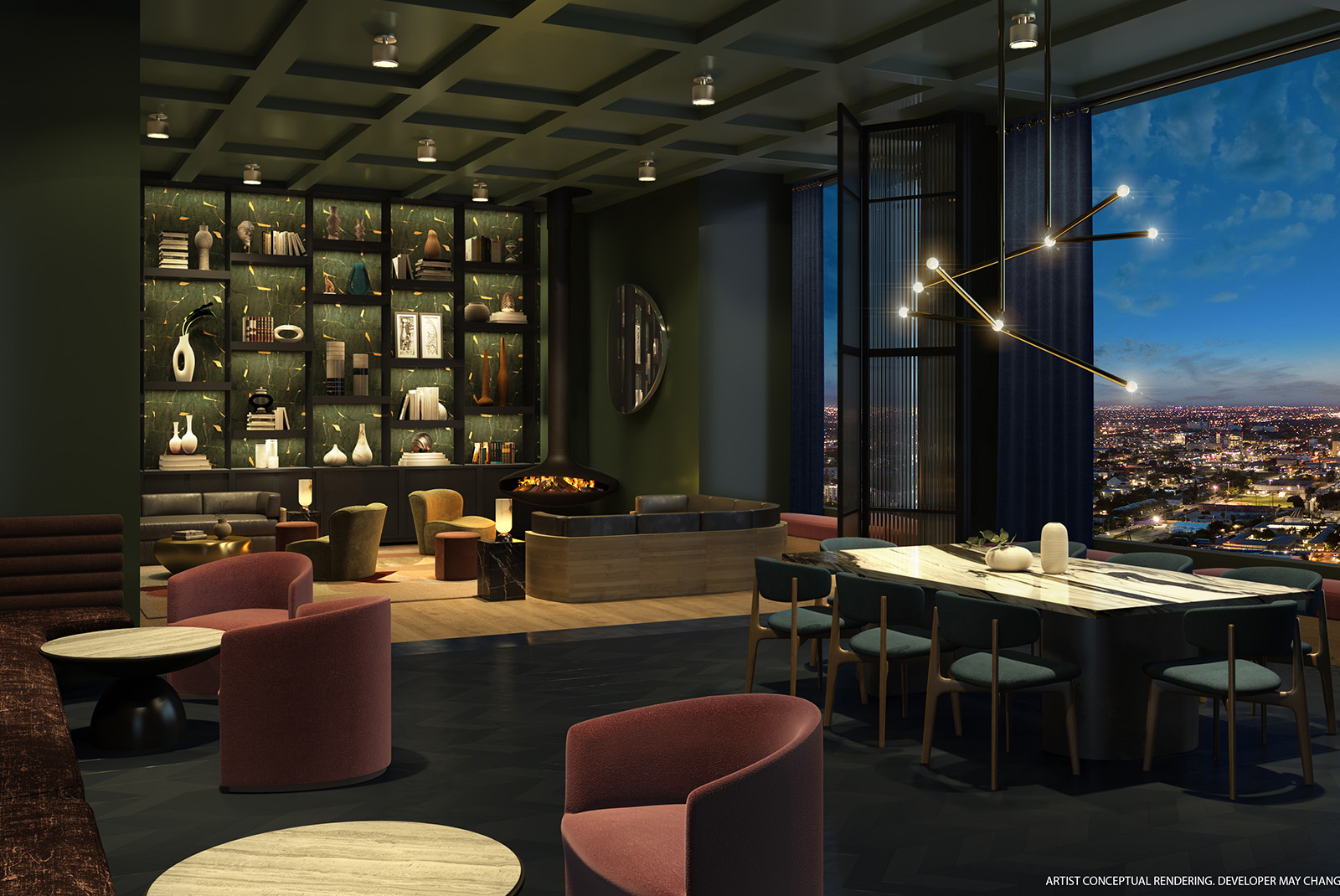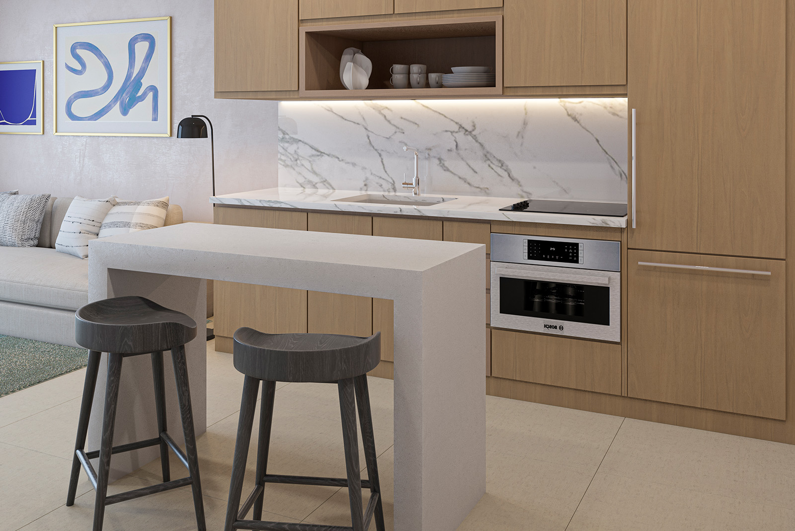 Os espaços comuns, lindamente projetados, estabelecem um tom sofisticado, enquanto cada residência oferece uma tela bem equipada para a autoexpressão.